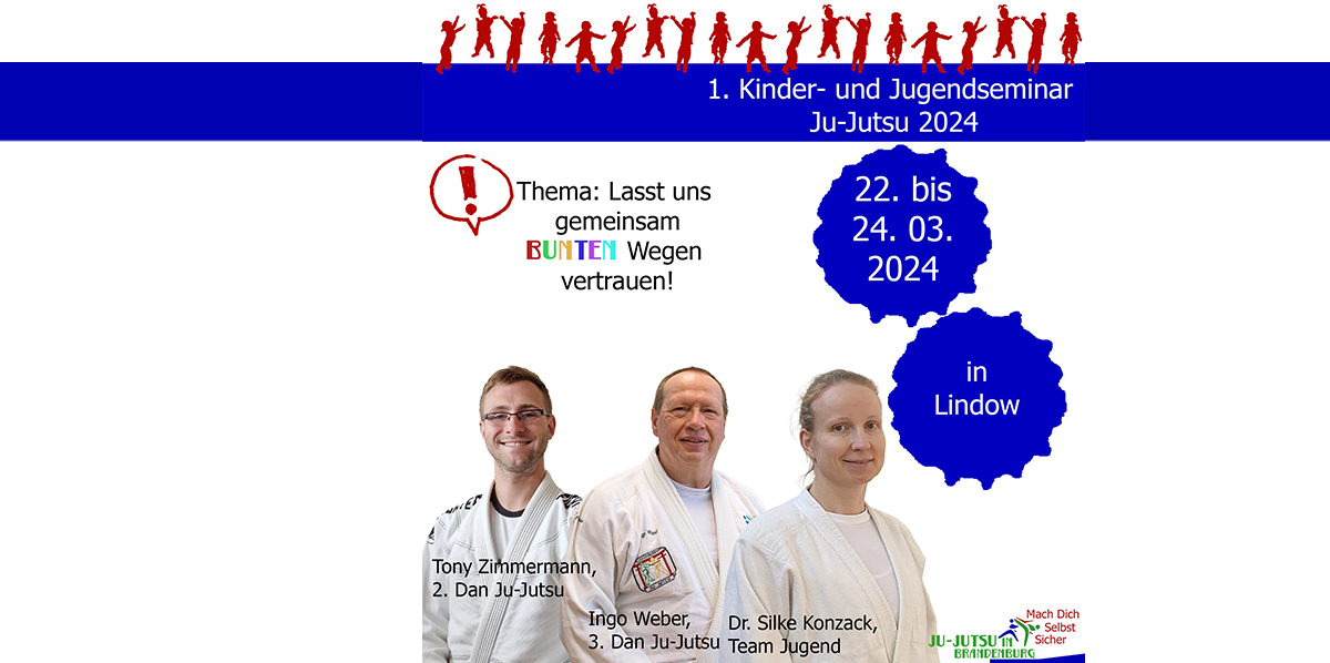 Das Programm fürs 1. Kinder- und Jugendseminar steht. Slogan diesmal: "Lasst uns gemeinsam bunten Wegen vertrauen. Ju Jutsu ist wie LEGO, lasst uns spielen!"