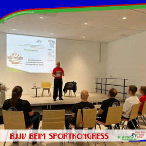 Heute fand in Potsdam der 2. Brandenburger Sportkongress vom Landessportbund Brandenburg statt - und wir waren natürlich dabei. Genauer: Unser Ehrenpräsident Wolfgang Reitsch repräsentierte nicht nur die Ju-Jutsu-Familie Brandenburg - er gab auch einen Workshop zu unserem Gewaltpräventionskonzept "Nicht mit mir!".