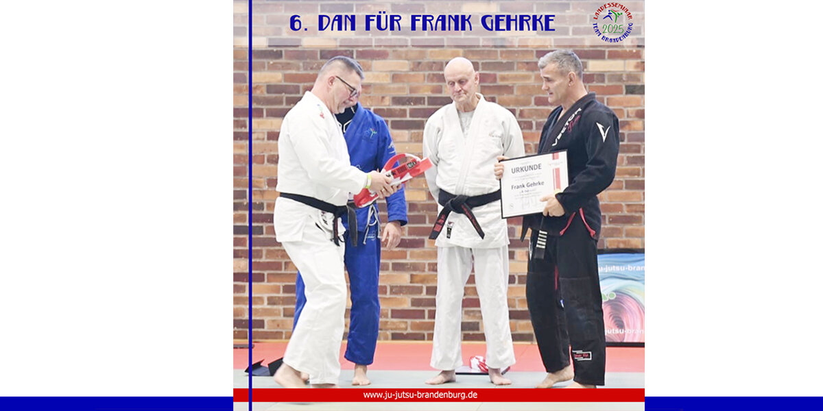 In Anerkennung seiner besonderen Verdienste, insbesondere als Landestrainer in den Leistungsstützpunkten in Brandenburg und für das Ju-Jutsu in Deutschland ehren wir heute Frank Gehrke mit dem 6. Dan Ju-Jutsu. ![]()