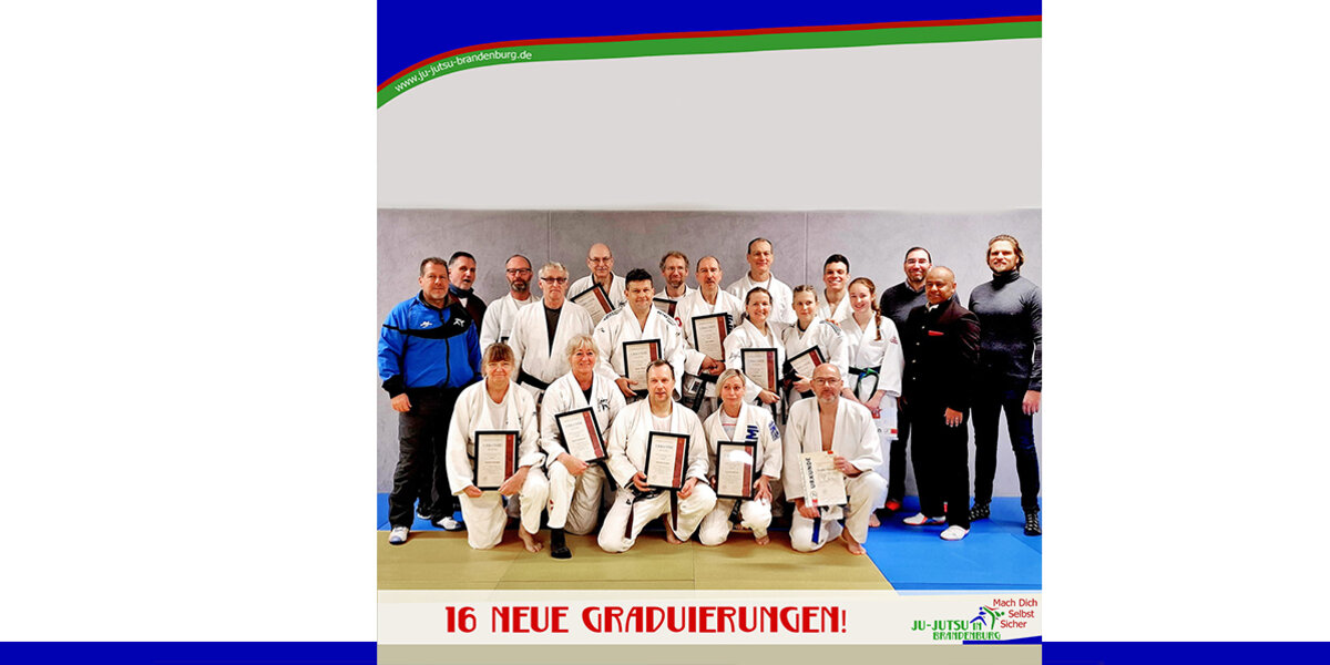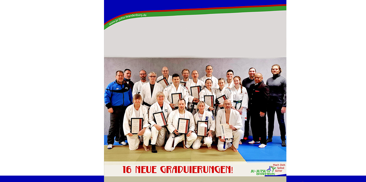 Es war ein spannender Tag mit viel Herzklopfen bei unseren Ju-Jutsukas. Und es hat sich gelohnt. Also, we proudly present: 16 neue Graduierungen im Team Brandenburg!