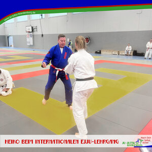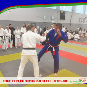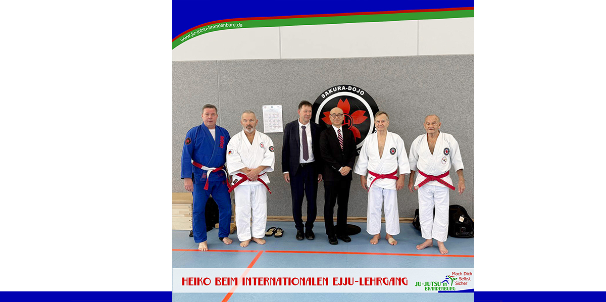 Gerade kommen liebe Grüße von Heiko Schwarz aus Düsseldorf. Er ist dort an diesem Wochenende als Referent beim 18. Internationalen Lehrgang der EJJU und vertritt unseren Verband bei diesem Top-Lehrgang. Und es ist wirklich ein internationales Event: 8 Nationen mit insgesamt 110 Teilnehmern gingen dort von Freitag bis heute auf die Matte. Das Tolle: Auf 800 Quadratmetern Tatami gab es Budosport mit vielen internationalen Großmeistern. Es ist wirklich für jeden etwas dabei - vom Weißgurt bis zum 9. Dan. Eine besondere Ehre: Auch der japanische Konsul kam zu Besuch und ließ sich von den Kampfkünsten überzeugen. ☺🥋💪