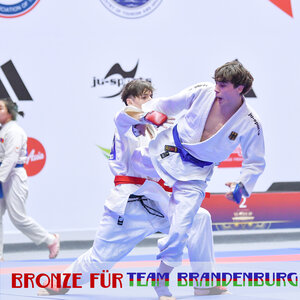 Dabei startete der Tag richtig gut! Zuerst ging Nicolas Schulz vom 1. Ju-Jutsu Verein Bernau auf die Matte - und ließ seinem Gegner keine Chance. Mit Full Ippon siegte er! Und auch Joshua Kirschke vom PSV Basdorf startete perfekt in die JWM. Seinen ersten Gegner, den Griechen Ionnis Louloidis, besiegte er klar mit 14:8. Bei seinem zweiten Gegner zeigte er wieder seine ganze Stärke und schickte den Iraner Reza Bagheri mit Full Ippopn von der Matte.