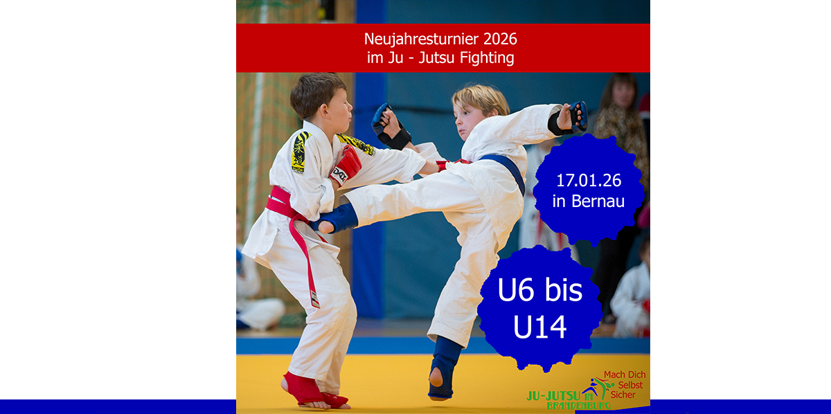 Für alle Nachwuchs-Fighter: Diesen Termin solltet ihr euch sofort in den Kalender eintragen. Am 17. Januar gibt es beim Randori Bernau das Neujahresturnier für U6 bis U14. Anmeldungen werden bis zum 5. Januar unter Info@Ju-Jutsu-Randori-Bernau.de angenommen.