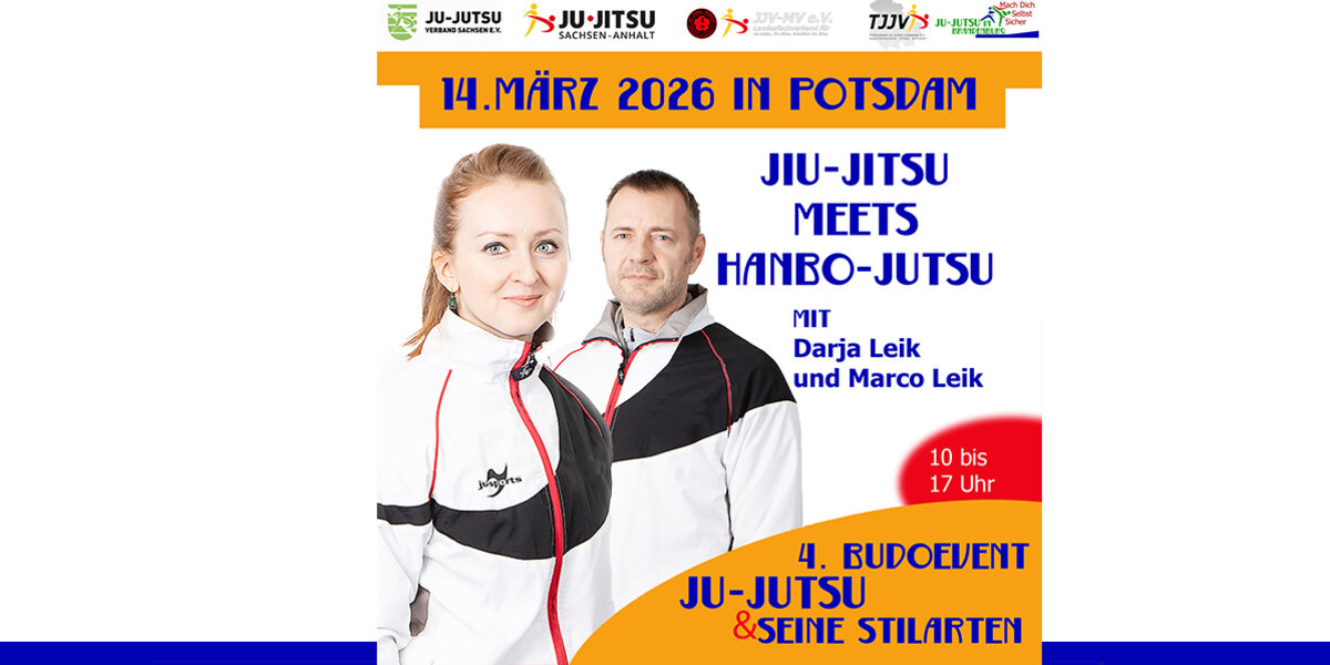 Heute: Marco und Darja Leik vom Ju-Jutsu Landesverband Sachsen. Ihr Thema: Jiu-Jitsu meets Hanbo-Jutsu. Die beiden zeigen euch u.a. Stock gegen Stock mit Entwaffnung, Verteidigung gegen Messer und Axt sowie traditionelle und moderne Techniken aus dem japanischen Jiu-Jitsu zur Messerabwehr.![]()
