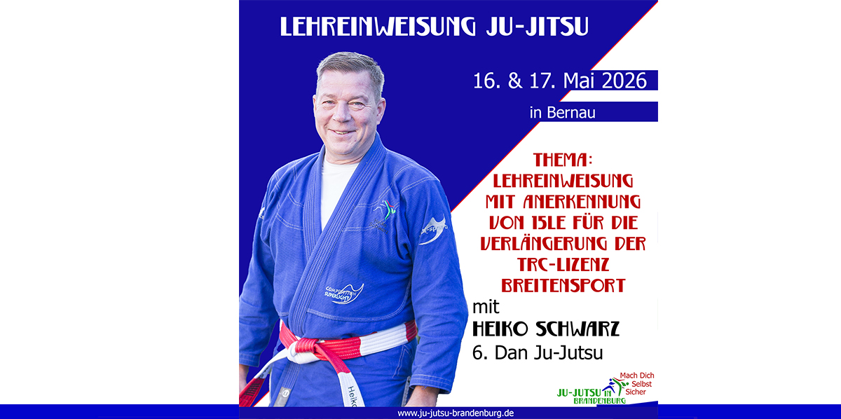 Hast du dich schon für die „Lehreinweisung-Ju-Jutsu“ angemeldet? Sie ist Voraussetzung für alle Sportler, die eine Dan-Prüfung anstreben und noch keine TrC-Ausbildung gemacht haben.