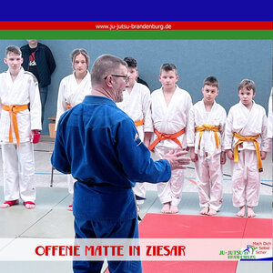 Bei der „offenen Matte - Ju-Jutsu-Fighting“ in Ziesar herrschte großer Andrang: 51 Kinder und Jugendliche aus 7 Vereinen (Basdorf, Borkheide, Brandenburg, Fehrbellin, Schönebeck (ST), Ziesar und vom BCB (B) waren begeistert dabei. Es ging ums Regelwerk, dann wurden zwei Stunden lang Part 1, 2 und 3 trainiert. Es gab Randoris mit jeweils 1 Minute und permanenten Wechseln. Und zum Abschluss gab es noch über 20 Freundschaftswettkämpfe . Kurz: Es war ein toller Tag für den Wettkampfnachwuchs.