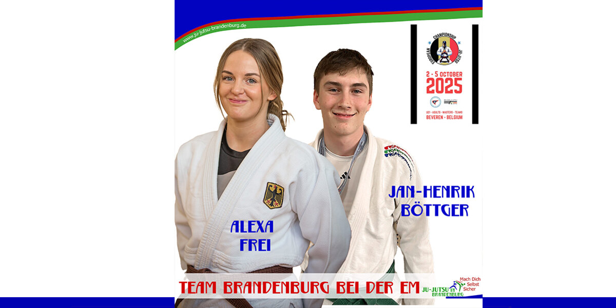 Ab Donnerstag heißt es für uns: Daumen drücken für unser Team Brandenburg bei der EM 2025 in Belgien! Für uns gehen Alexa Frei und Jan-Henrik Böttger auf die Matte. Wir sind in Gedanken bei euch - und feuern euch lautstark an!