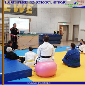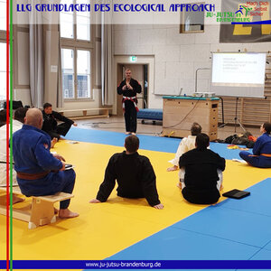Für knapp 20 TrainerInnen C und ÜbungsleiterInnen hieß es heute in Basdorf: Neues für das Training lernen. Unser Landestrainer Frank Gehrke, 6. Dan Ju-Jutsu, stellte ihnen die Grundlagen des Ecological Approach vor - also wie nehmen Athleten/Teilnehmer/innen ihre Umgebung wahr und wie kann ich mit diesem Wissen Lösungen für sportliche Probleme finden. Dazu kam die Gestaltung von „representative learning environ-ments“: wie kann ich Übungsformen so gestalten, dass sie die zu erwartende Realität/ Wetkkampfrealität widerspiegeln und damit anwendbares Können fördern. Ebenfalls auf dem Plan: Vom Korrigieren zum Gestalten - vom Instrukteur hin zum Designer von herausfordernden und lernförderlichen Trai-ningsumgebungen.