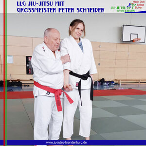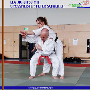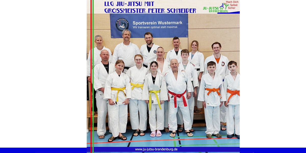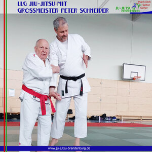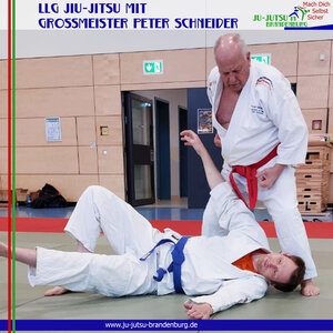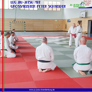 Und noch einmal gingen unsere Jiu-Jitsuka mit Großmeister Peter Schneider (10. Dan Jiu-Jitsu) auf die Matte. Beim Landeslehrgang in Wustermark waren sogar fünf Kinder dabei. Und natürlich konnte Peter Schneider sie sehr gut mit einbinden. Getreu dem heutigen Thema "Kontaktangriff und Abwehr" gab Peter tolle Einblicke in sein umfangreiches Technikportfolio . Dabei stand für ihn immer sein Motto "aus der Praxis für die Praxis" im Fokus.