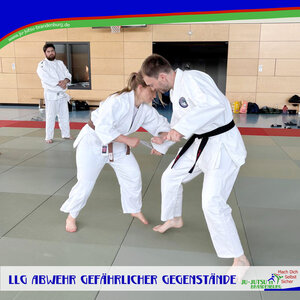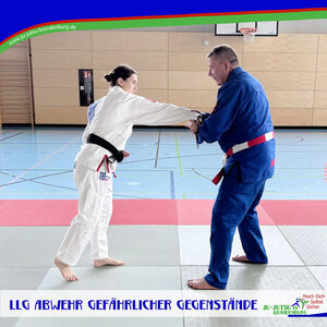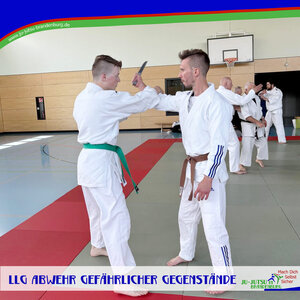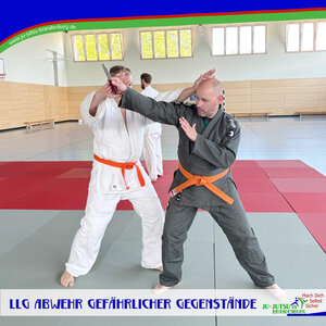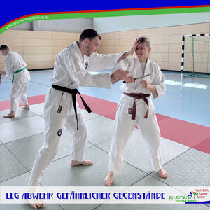Und so hatte unser Heiko Schwarz, 6. Dan Ju-Jutsu, gestern eine ganz besondere Premiere: Zum ersten Mal gab er einen Lehrgang in Wustermark. Und ist noch immer ganz begeistert: Tolle Organisation, tolle Halle (mit tollem Klima - so wurde der Lehrgang nicht zum Saunagang) - und vor allem tolle und hochmotivierte TeilnehmerInnen! 16 Ju-Jutsukas kamen und ließen sich von ihm und Pia Suter in die Abwehr gefährlicher Gegenstände einführen. Dabei gab es einmal die Griffe, die bei einer Prüfung wichtig sind. Und dann gab es die Tricks, die auf der Straße effektiv sind. ![]()