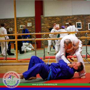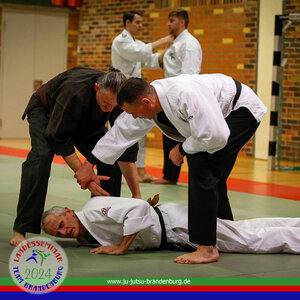 Was für ein Start ins Landesseminar 2024: Unser Landestrainer Frank Gehrke zeigte Übergänge vom Stand zum Boden und verriet dabei so manchen Kniff. Und Lothar Spielmann, Referent Prüfung beim BJJV, tauchte mit den Ju-Jutsukas in die Kombinationen im Prüfungsprogramm sowie den Umgang mit Festlege-, Aufhebe- und Transporttechniken.