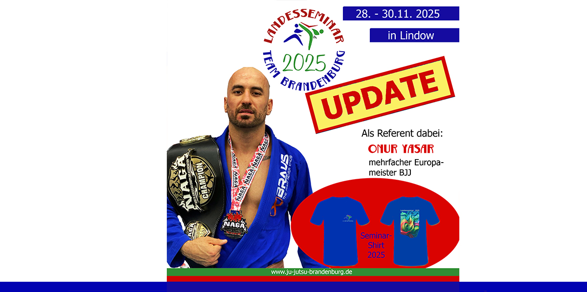 Wir dürfen noch einen Referenten der Extraklasse in Lindow begrüßen: Onur Yasar von der Academia Braunschweig wird neben Habip Burak Akbiyik beim BJJ mit euch auf die Matte gehen. Und damit haben wir den zweiten BJJ-Experten für euch. Onur ist zum Beispiel mehrfacher Europameister und auch seine Schüler sorgen regelmäßig für einen Medaillenregen bei Turnieren. Kurz: Mit dem Referenten-Duo Habip und Onur warten zwei BJJ-Meister auf euch ![]()