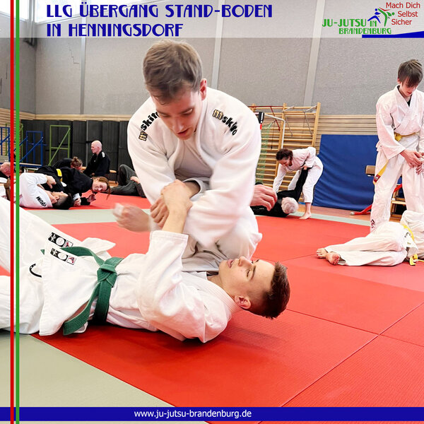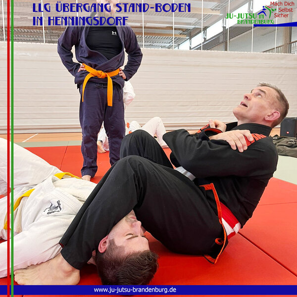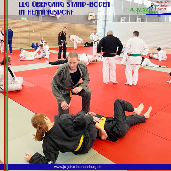 Wie bringe ich meinen Gegner vom Stand auf den Boden? Dass es auf die Frage wirklich viele Antworten gibt - das bewies unser Landestrainer Frank Gehrke gestern beim Landeslehrgang in Henningsdorf. Schwerpunkt war dabei die fließende Verbindung zwischen Stand- und Bodenkampf.