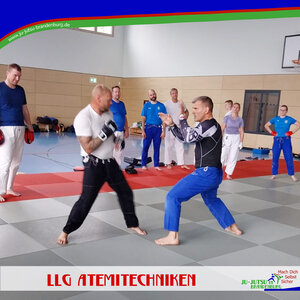 Beim Landeslehrgang Atemitechniken mit unserem Landestrainer Frank Gehrke, 5. Dan Ju-Jutsu, kamen 29 Ju-Jutsuka ganz schön ins Schwitzen. Drei Stunden lang ging es um die sinnvolle Kombination verschiedener Atemitechniken (Hand-, Fuß-, Ellenbogen-, Bein- und Knietechniken), taktische Grundlagen verschiedener Distanzen, effiziente Ju-Jutsu-Techniken in der Freien Selbstverteidigung und Anwendungsformen in verschiedenen Intensitätsstu-fen. Da war für jeden was dabei - und am Ende waren sich alle einig: Das war ein mega lehrreicher Lehrgang, der nach einer Fortsetzung "ruft" ![]()