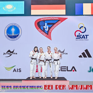 Jetzt ist auch die JWM in Thailand für unsere Ju-Jutsuka vorbei. Und wir sind sind so stolz auf unser Team Brandenburg, dass wir es noch einmal feiern möchten: Alexa Frei und Martin Scheibe, die als neue Weltmeister nach Hause kommen. Joshua Kirschke, der eine Bronzemedaille im Gepäck hat. Nicolas Schulz, der so stark startete und dann von einer Verletzung gebremst wurde. Fenja Stranz, die auf internationalen Parkett zeigte, dass sie mithalten kann. Alexander Arendt, der einen Gegner mit umstrittener Taktik hatte und nach zwei provozierten Kopftreffern disqualifiziert wurde. Im nächsten Kampf wurde eine Geste Richtung Trainer als „Sprechen auf der Matte“ gewertet - und damit endete die JWM für ihn. Bitter, denn er hat gezeigt, dass so viel mehr in ihm steckt. Und Adrian Dünow, der gegen Vietnam eindrucksvoll zeigte, was er kann, vorzeitig gewann und damit bewies, dass er seinen Platz bei internationalen Wettkämpfen verdient!